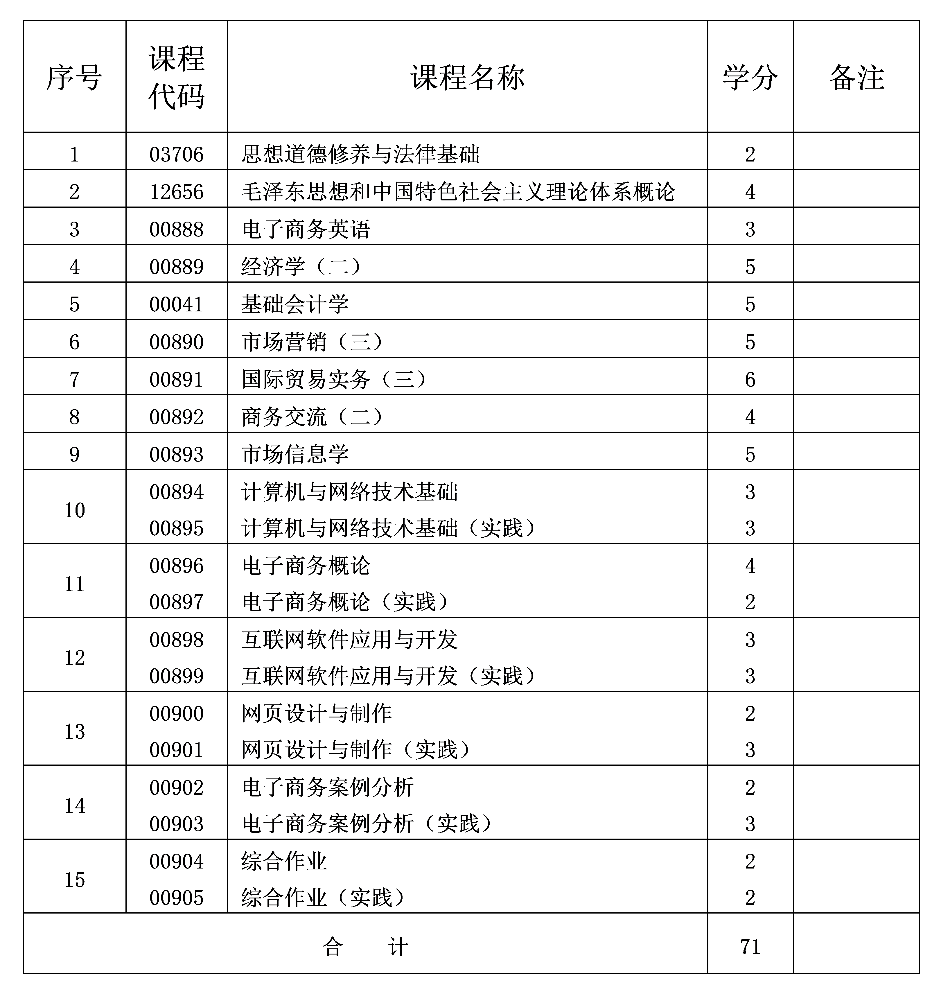 2023年10月重慶自考專科電子商務(wù)專業(yè)計(jì)劃
