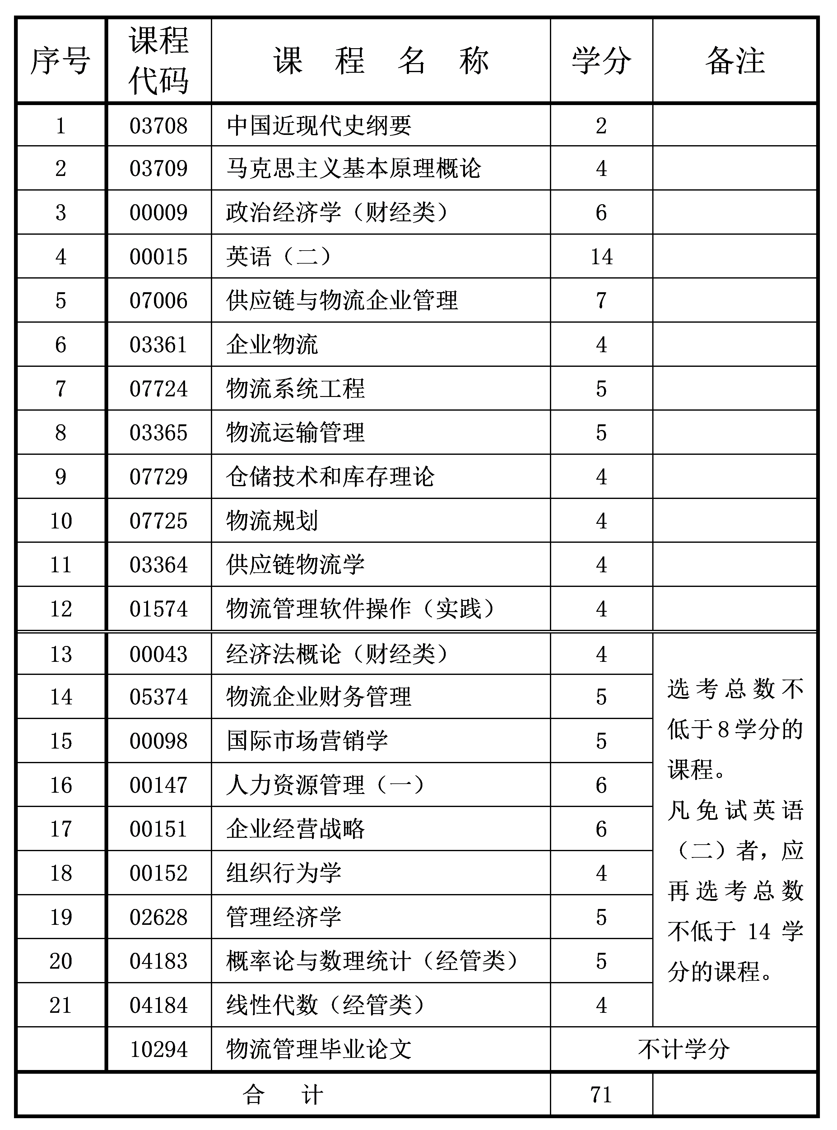 2023年10月重慶自考本科物流管理專業(yè)計劃