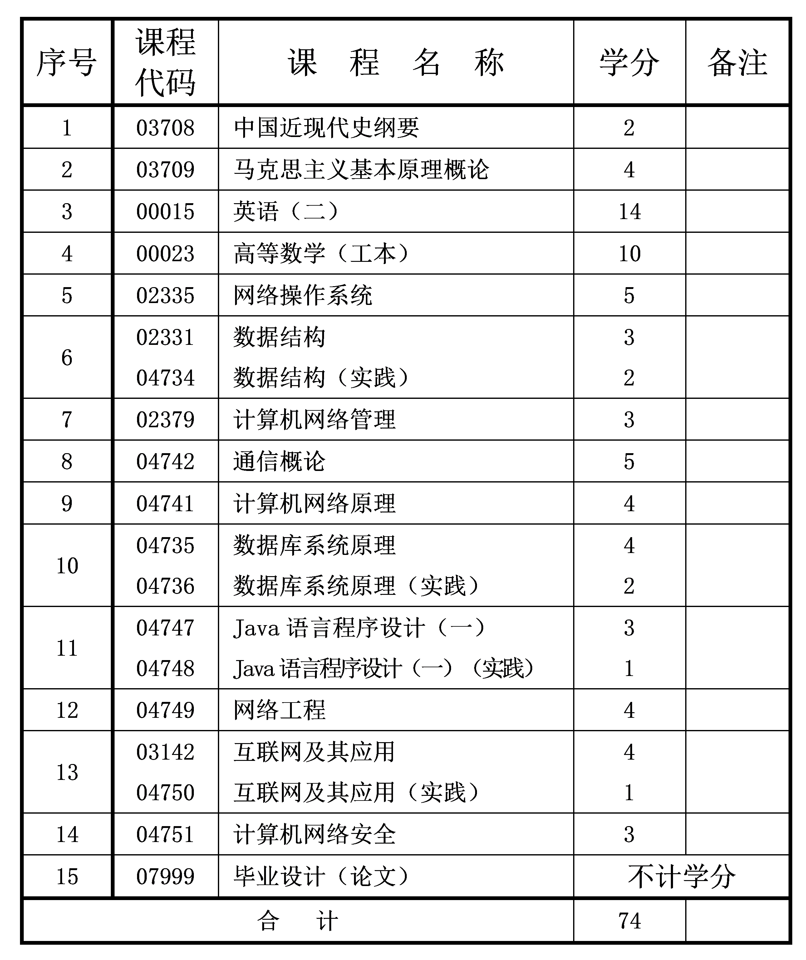 2023年10月重慶自考本科網(wǎng)絡(luò)工程專業(yè)計劃