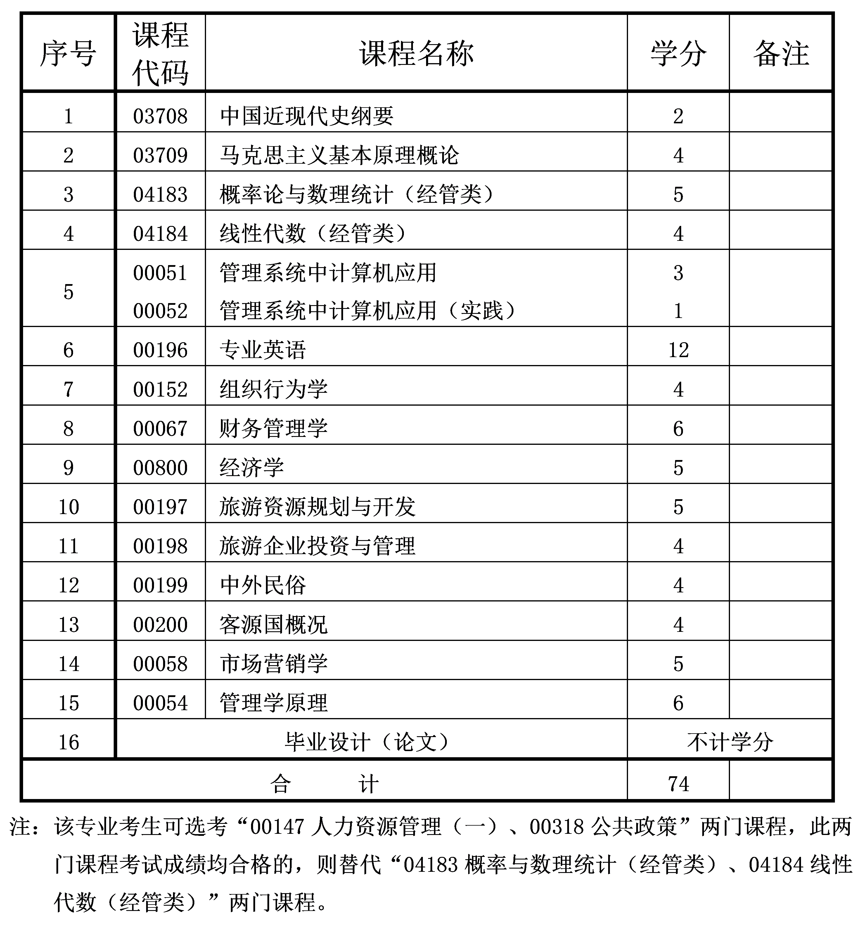2023年10月重慶自考本科旅游管理專業(yè)計(jì)劃