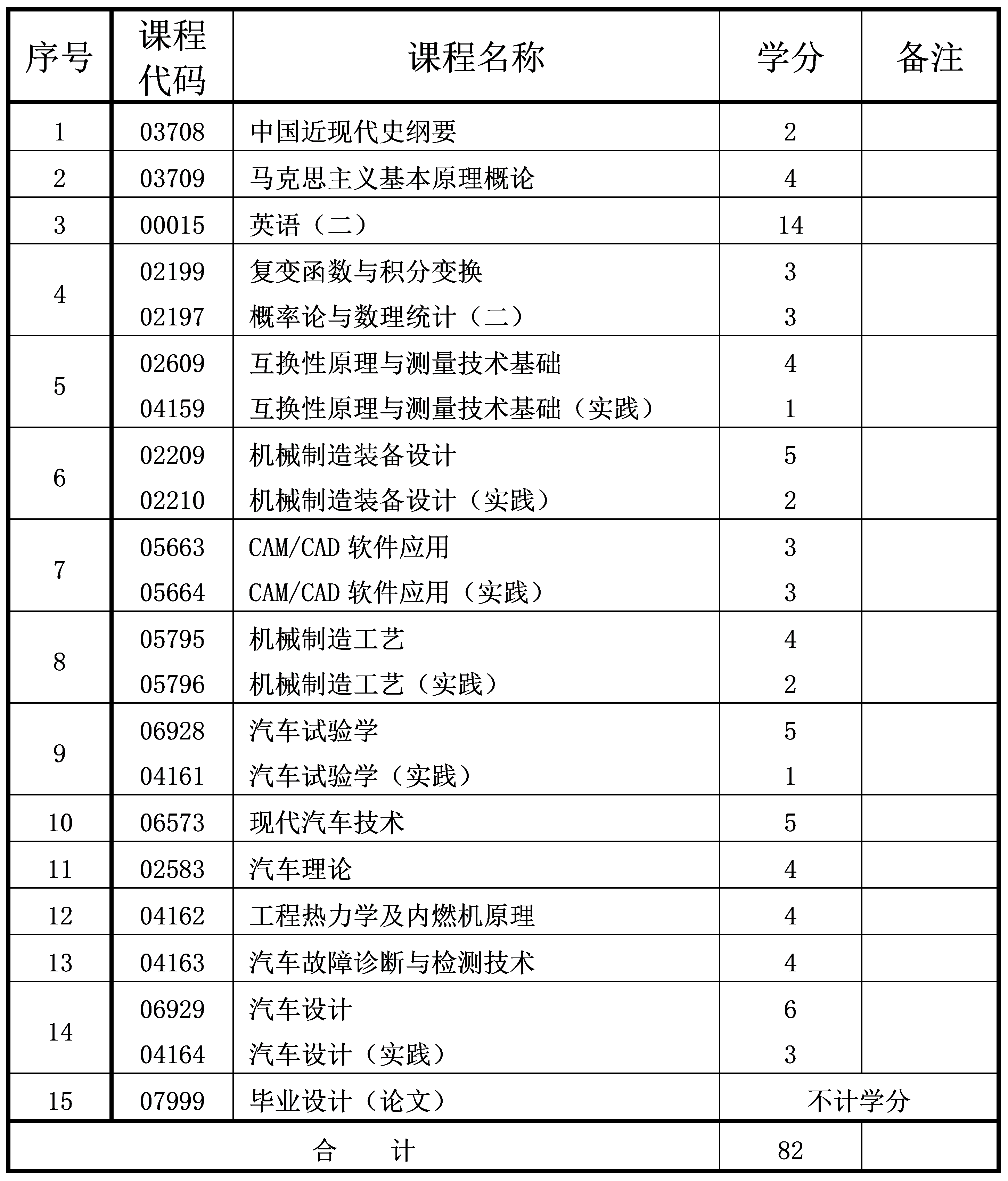 2024年4月重慶自考本科車輛工程專業(yè)計劃