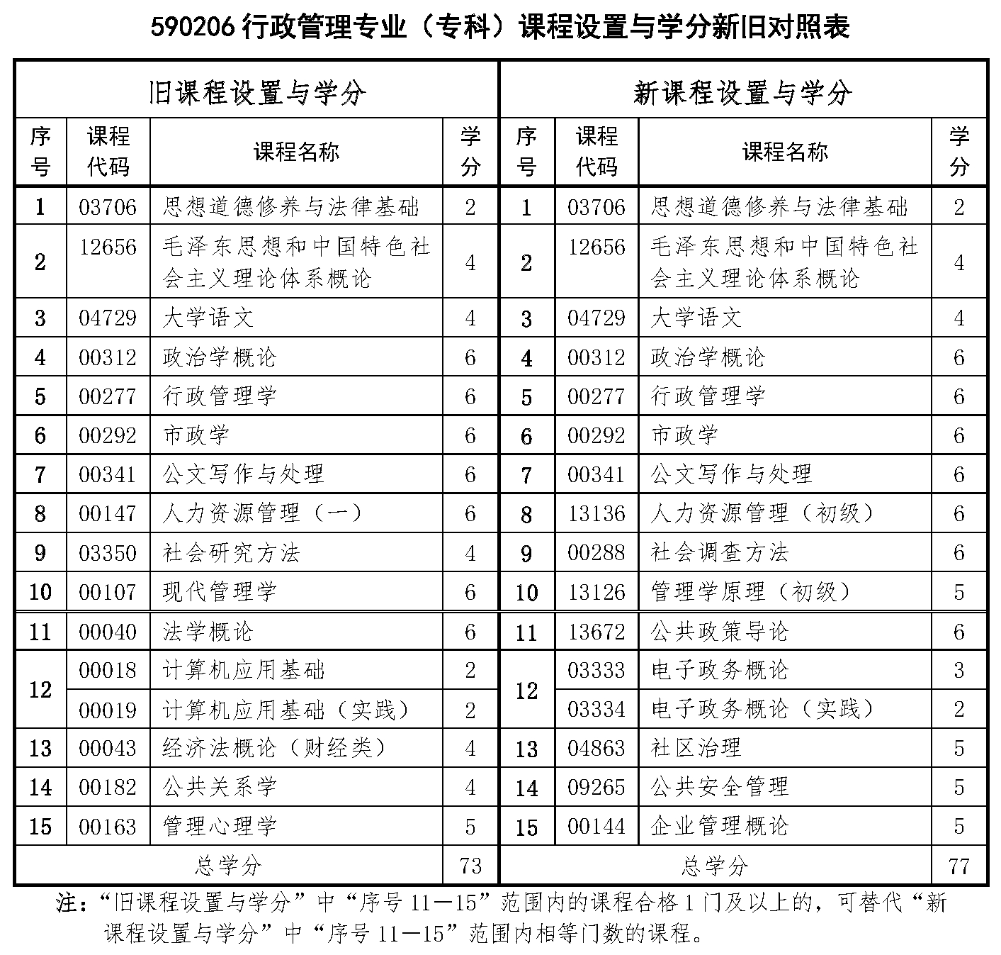 自2026年開始,重慶自考將啟用2024年版專業(yè)計(jì)劃,其中,重慶自考專科行政管理專業(yè)的課程設(shè)置與學(xué)分新舊對(duì)照表如下: