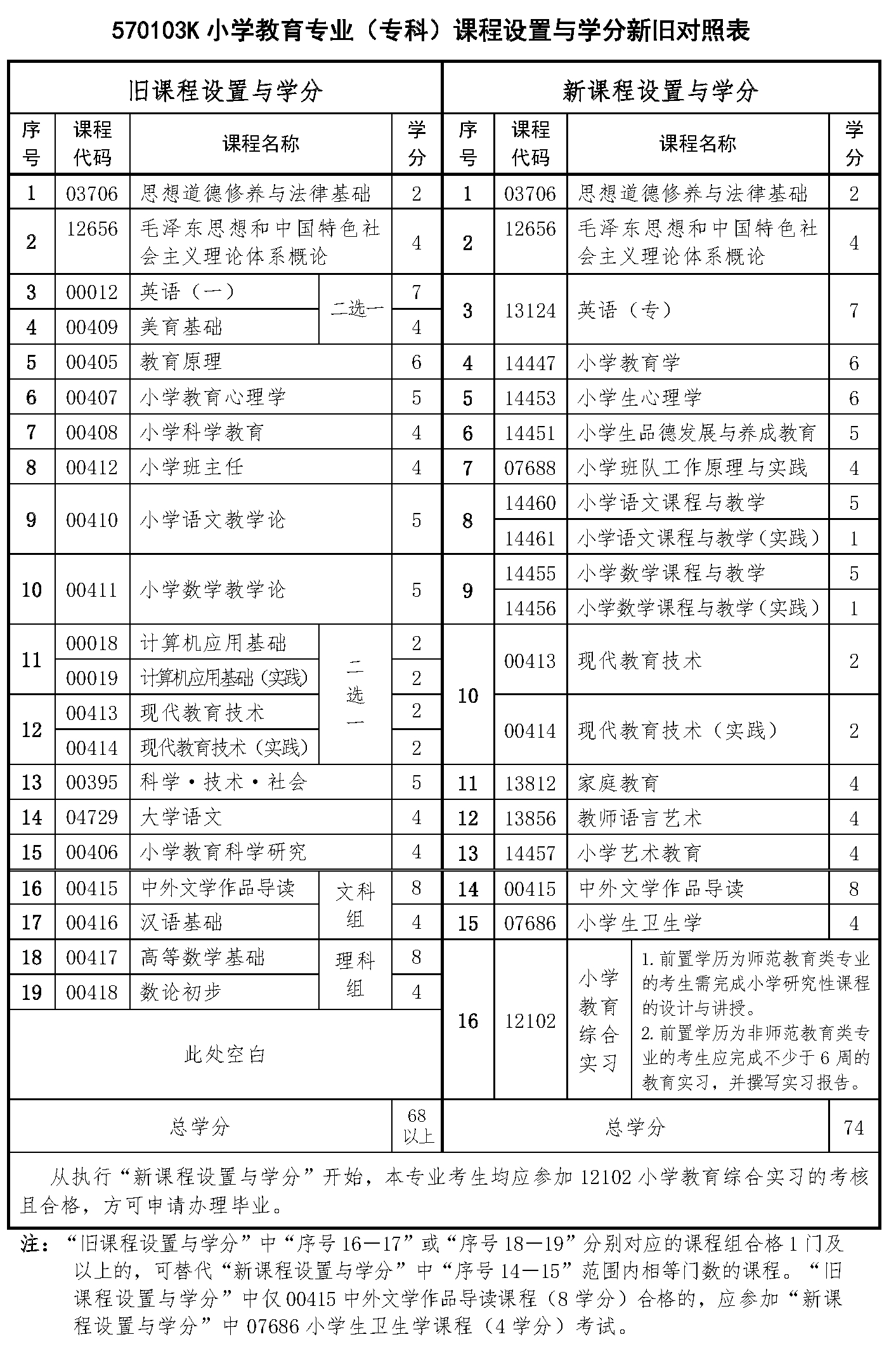 自2026年開始,重慶自考將啟用2024年版專業(yè)計劃,其中,重慶自考專科小學教育專業(yè)的課程設置與學分新舊對照表如下: