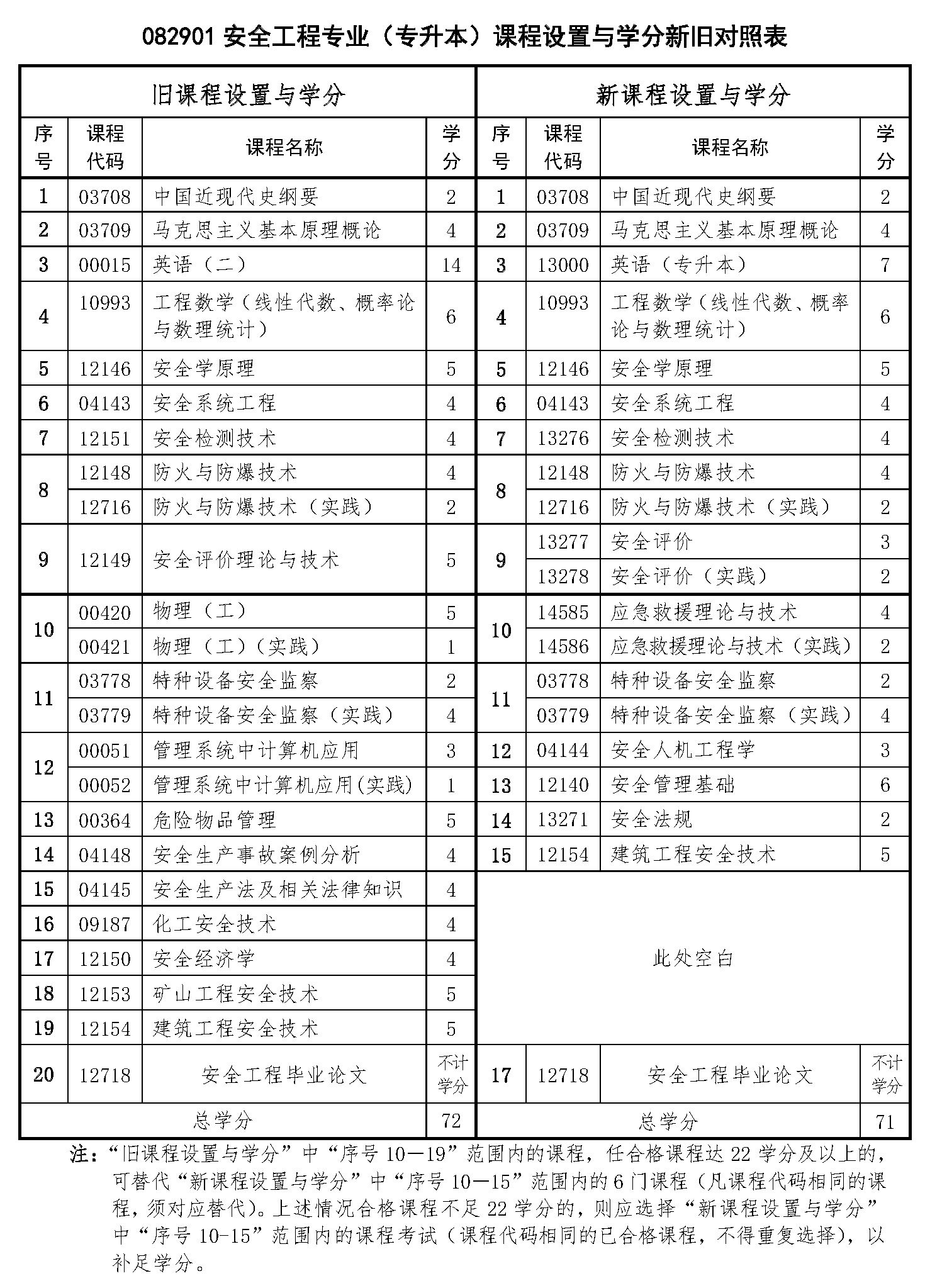自2026年開始,重慶自考將啟用2024年版專業(yè)計(jì)劃,其中,重慶自考本科安全工程專業(yè)的課程設(shè)置與學(xué)分新舊對(duì)照表如下: