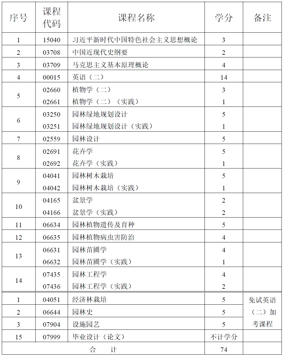 2025年4月重慶自考本科園林專業(yè)計(jì)劃