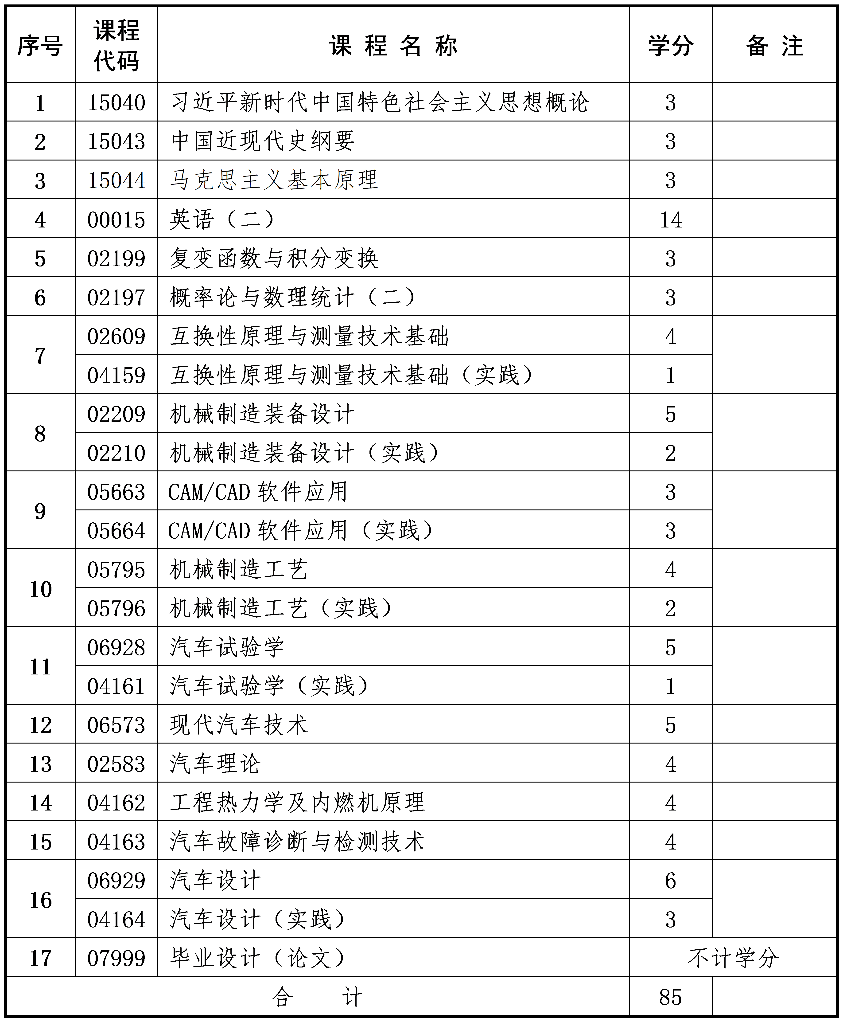 2025年10月重慶自考本科車輛工程專業(yè)計劃