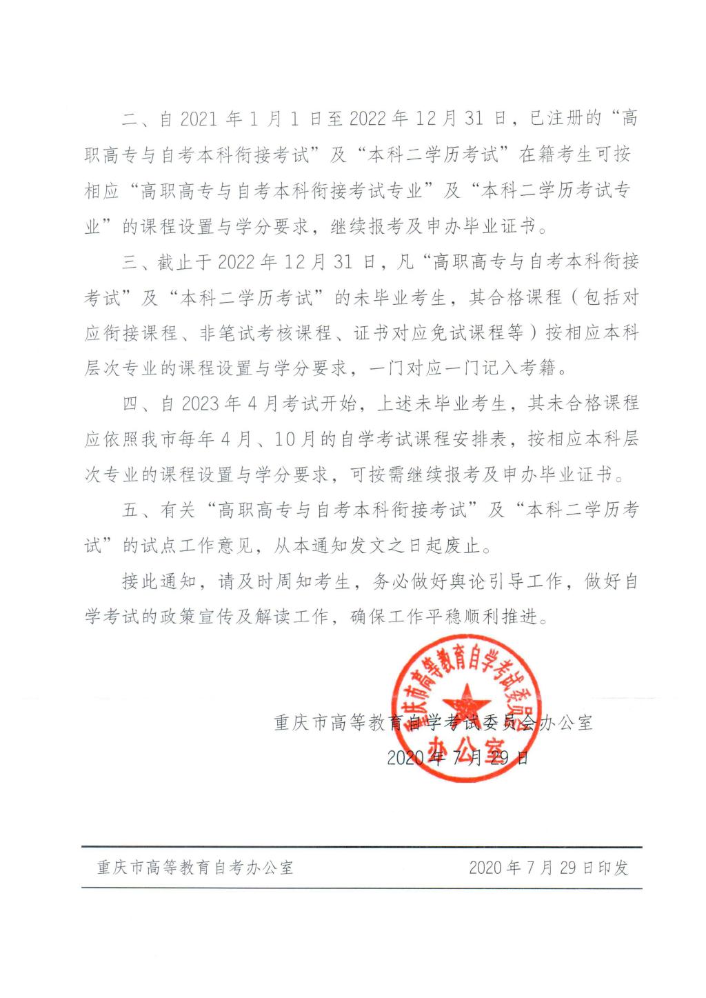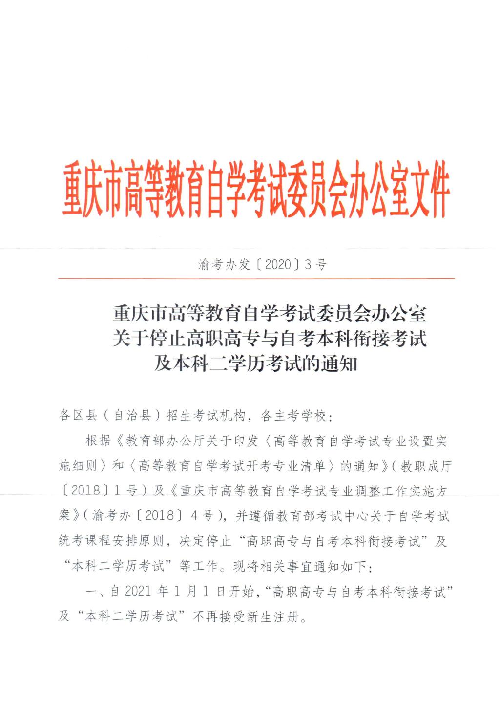 重慶市停止高職高專與自考本科銜接考試及本科二學(xué)歷考試通知