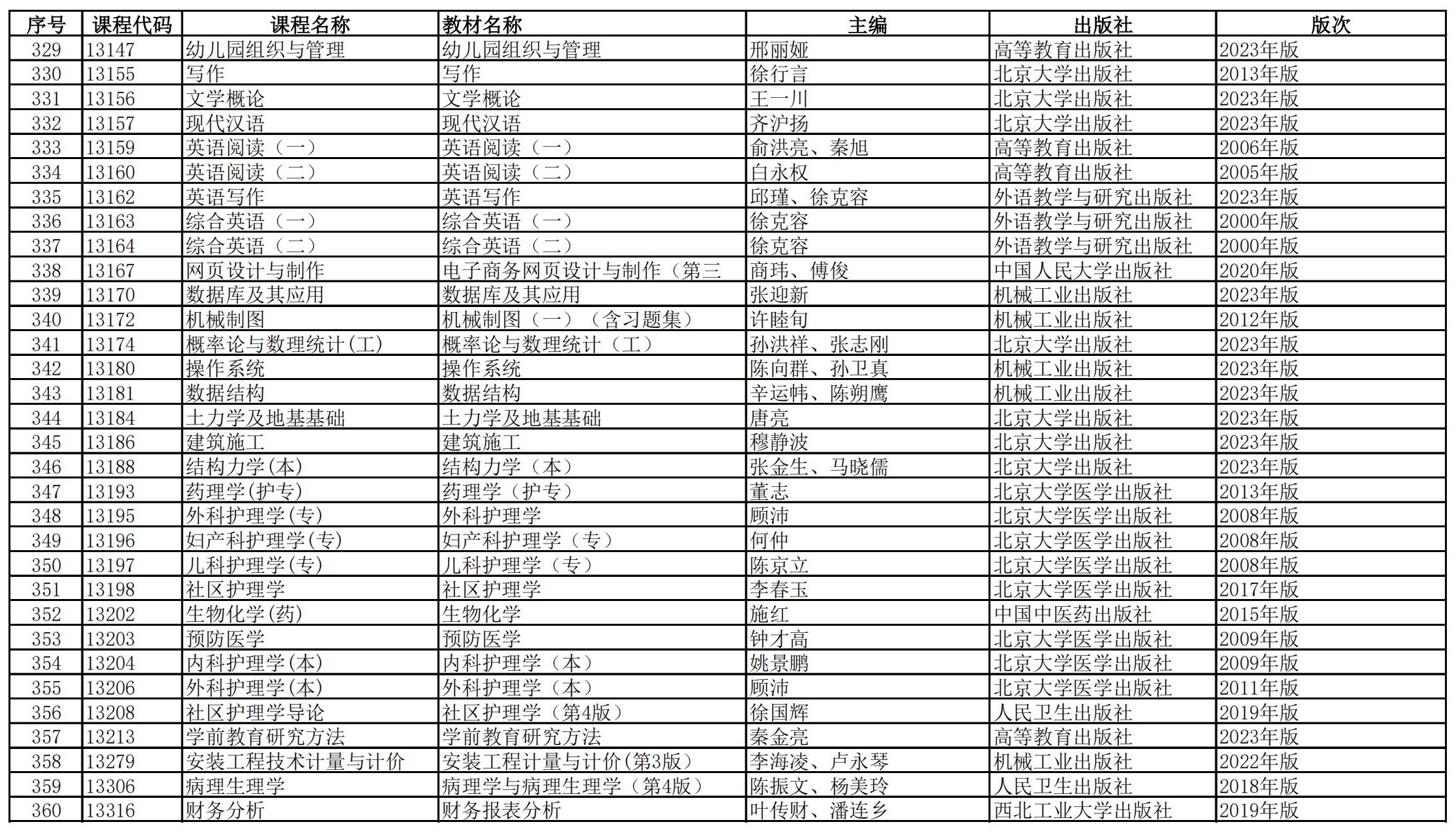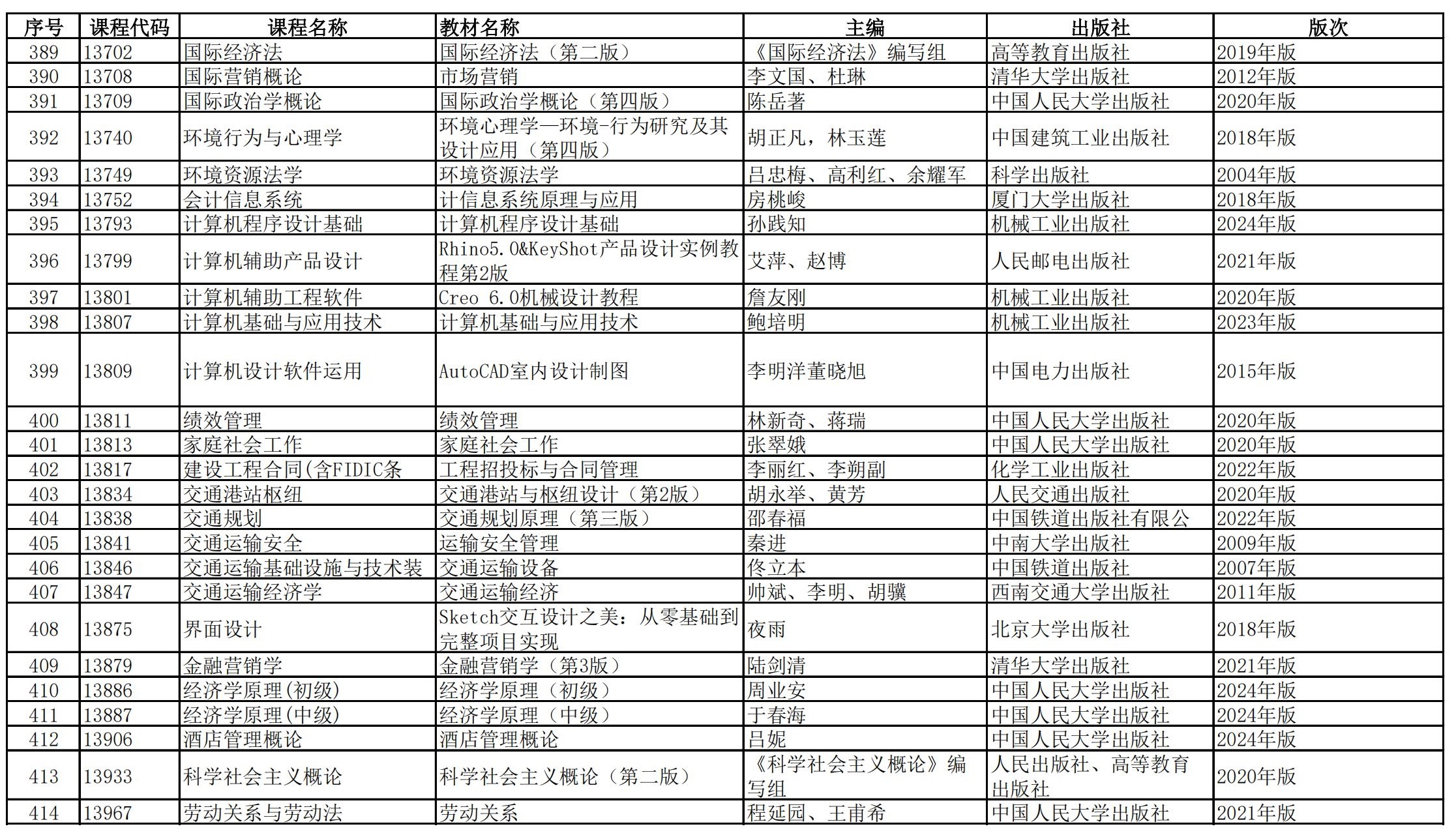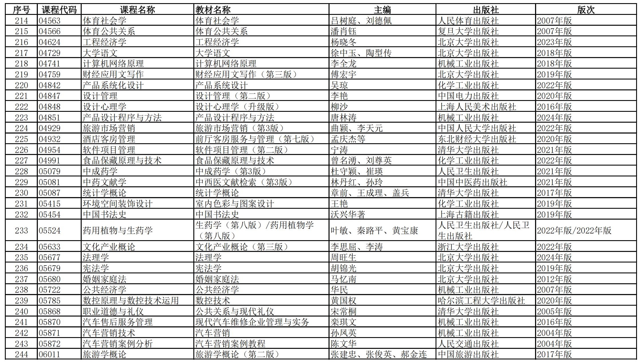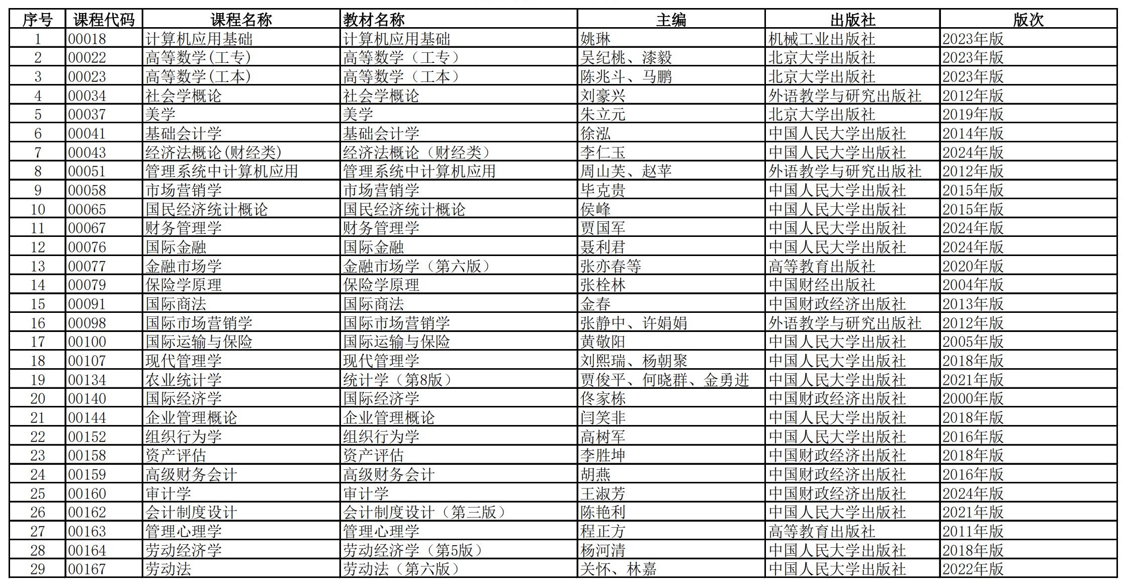 福建省高等教育自學(xué)考試?yán)碚撜n程參考教材目錄(2023年修訂版專業(yè)計(jì)劃)