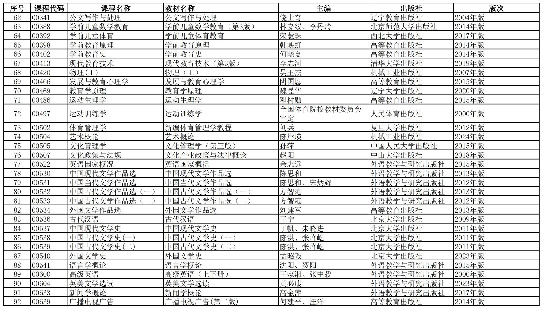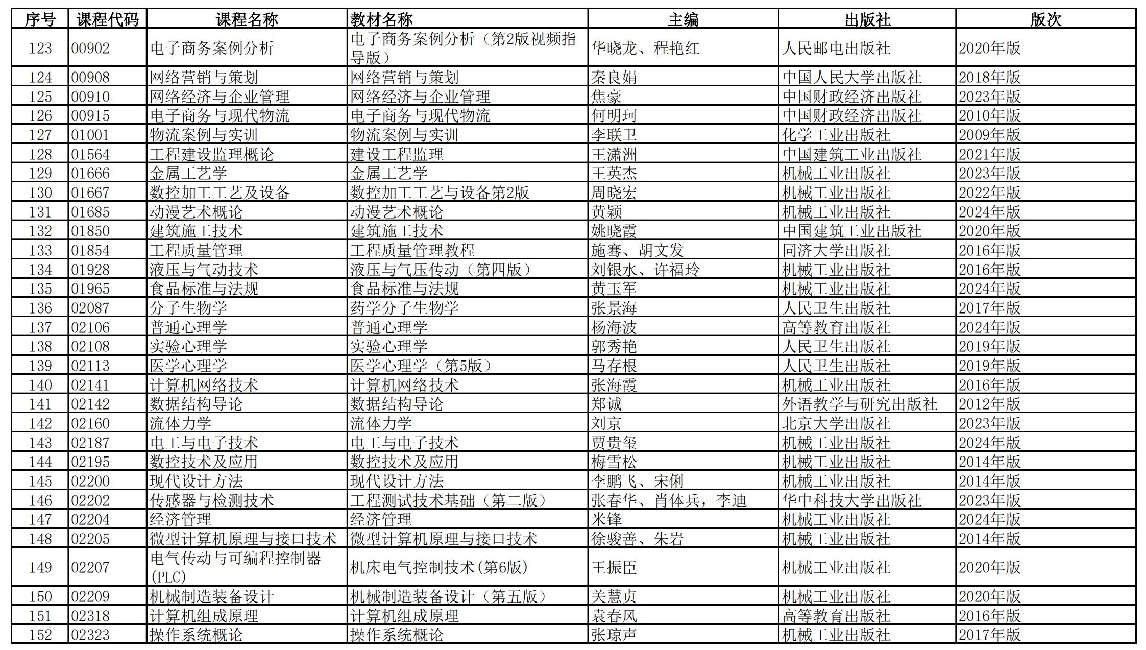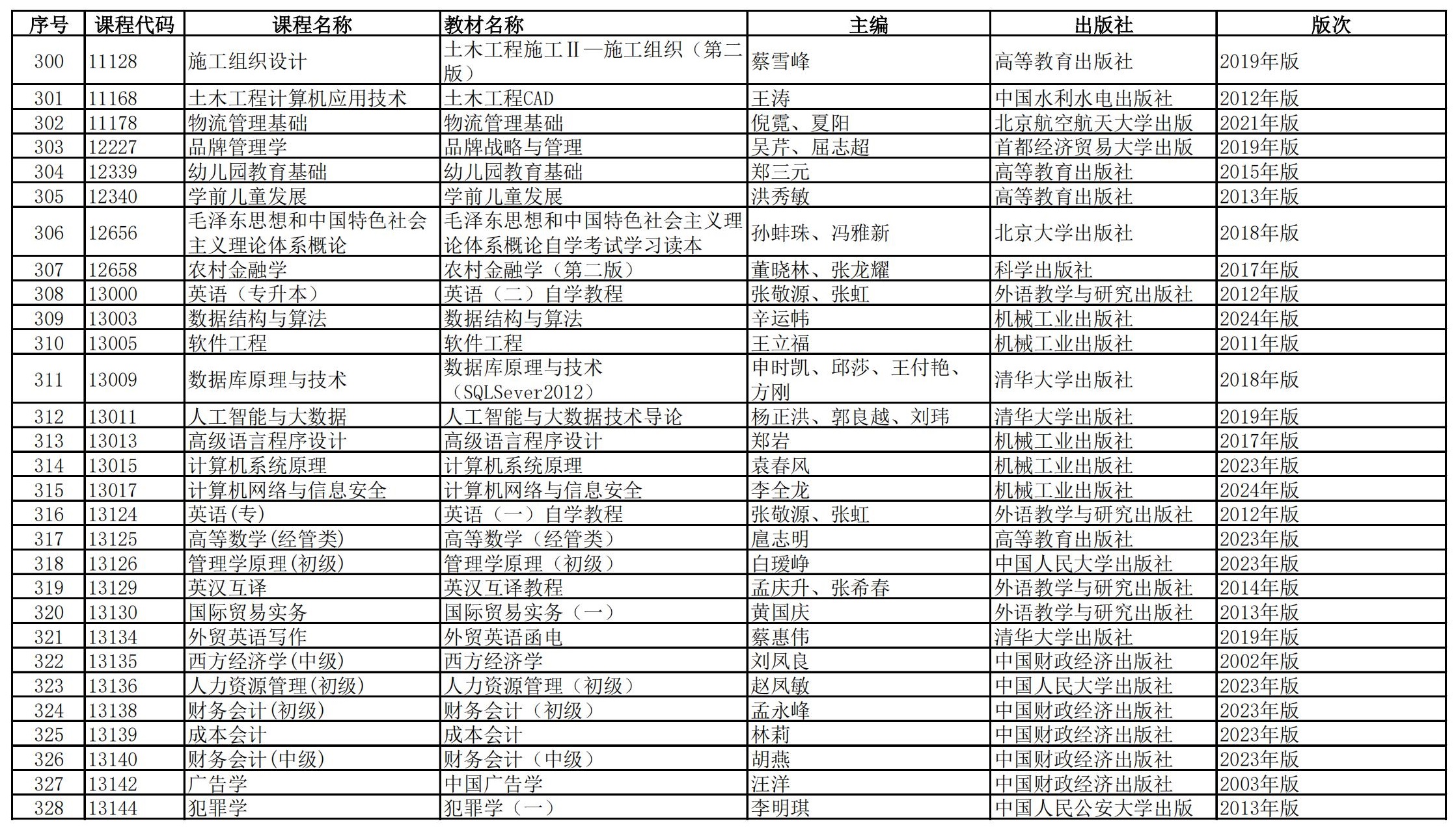 福建省高等教育自學(xué)考試?yán)碚撜n程參考教材目錄(2023年修訂版專業(yè)計(jì)劃)