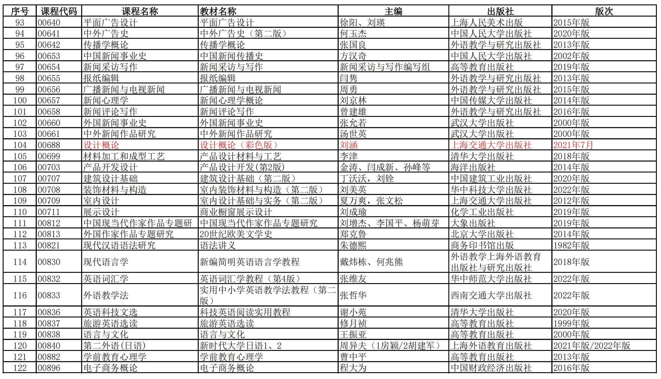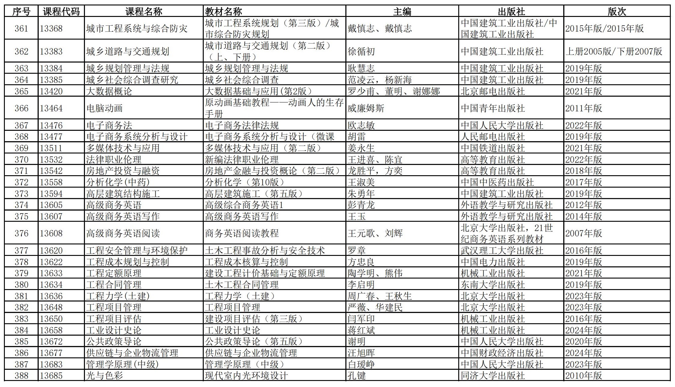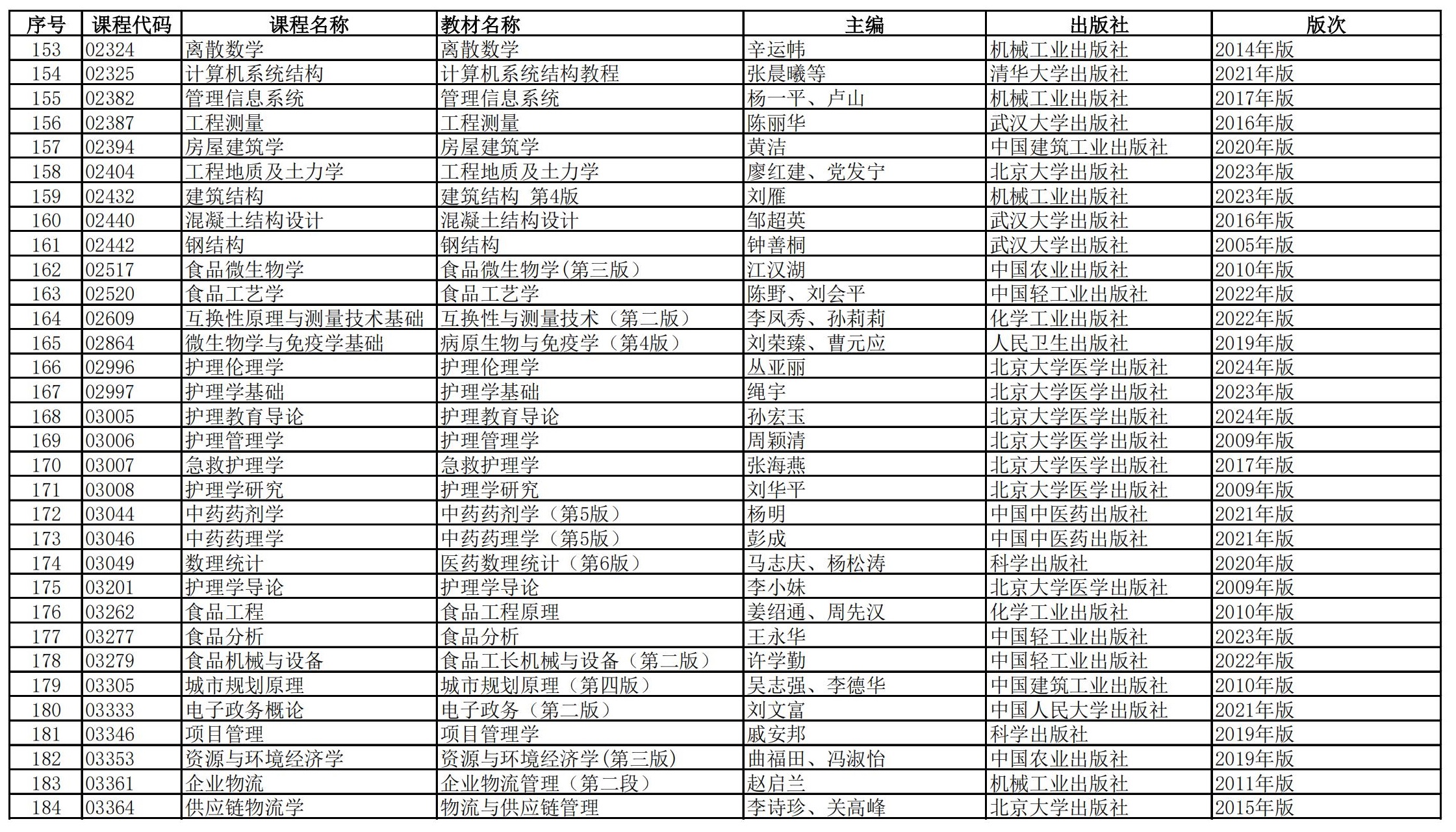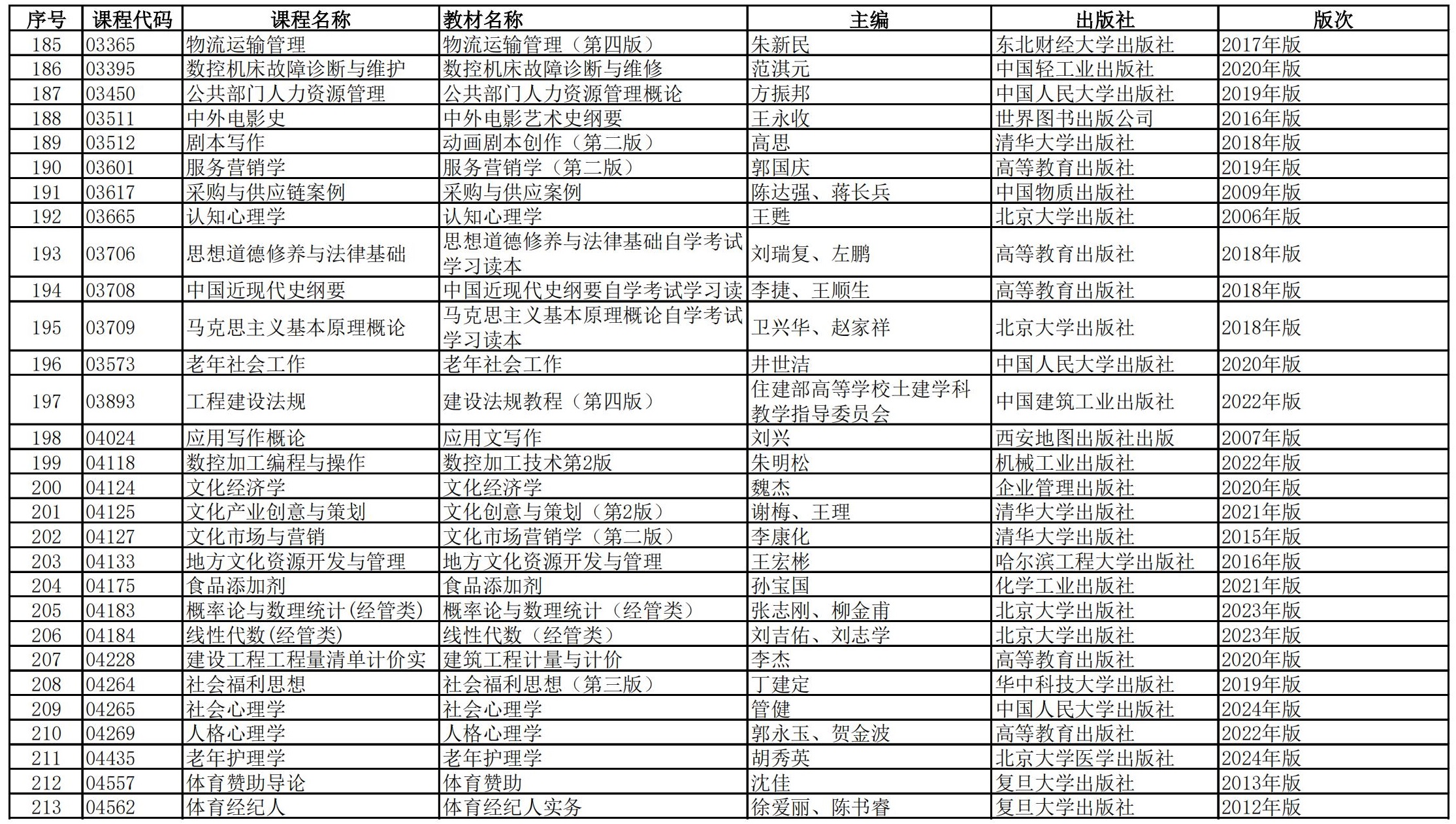 福建省高等教育自學(xué)考試?yán)碚撜n程參考教材目錄(2023年修訂版專業(yè)計(jì)劃)