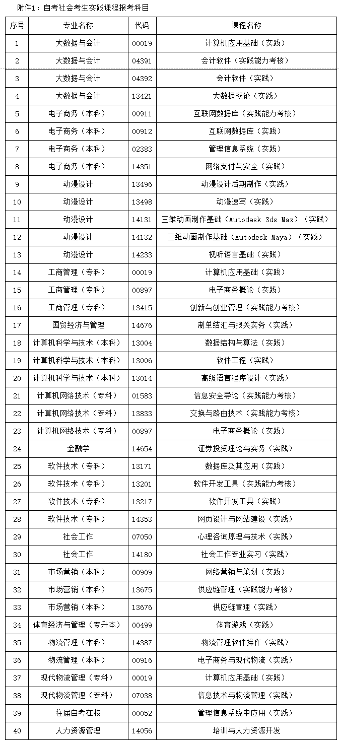 3.報(bào)考科目見附件1:自考社會(huì)考生實(shí)踐課程報(bào)考科目。