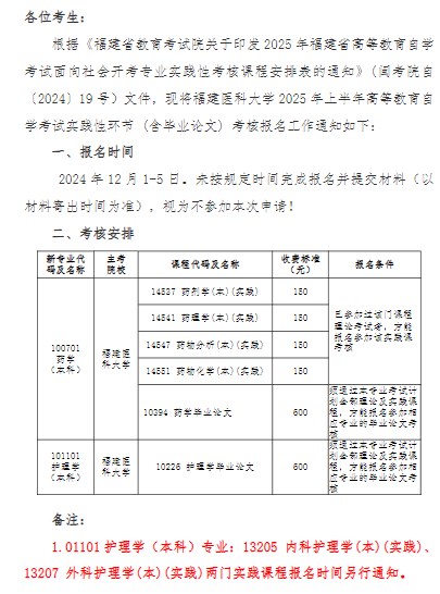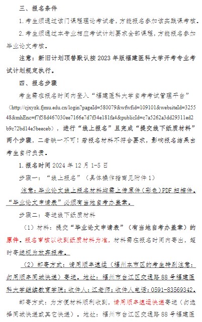 福建醫(yī)科大學(xué)2025年上半年自考實(shí)踐性環(huán)節(jié) (含畢業(yè)論文)考核報(bào)名通知