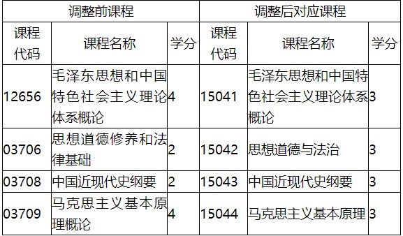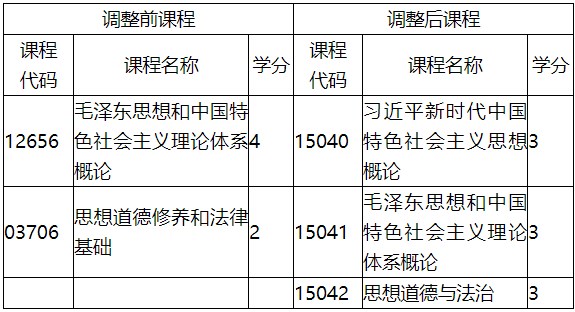 (一)已通過的思想政治理論課程可對應頂替調(diào)整后的思想政治理論課程。對應頂替關(guān)系如表所示