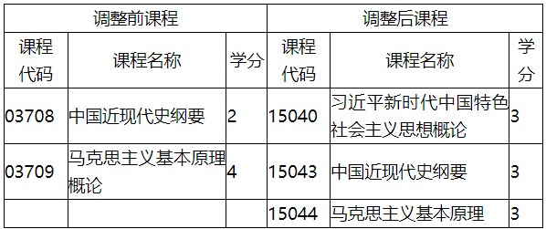 (二)原本科層次專業(yè)的2門思想政治理論課調(diào)整設置為3門。如表所示