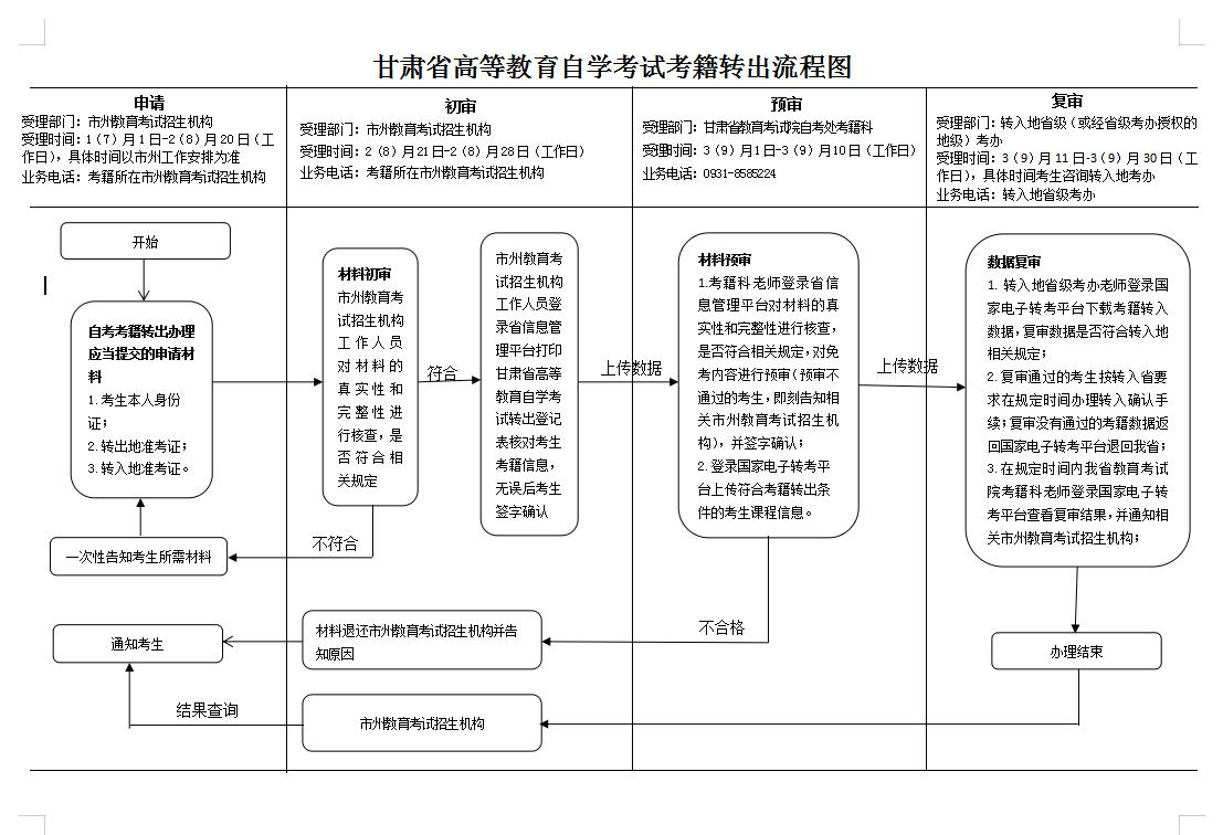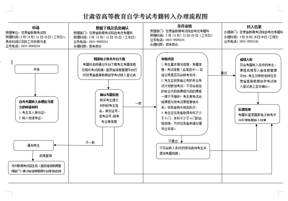 甘肅省高等教育自學考試考籍轉入、轉出辦理流程圖