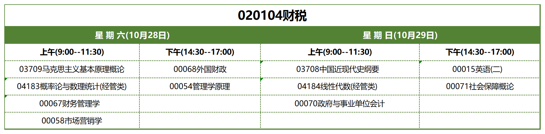 甘肅自考本科-財稅,10月考期具體考試安排如下: