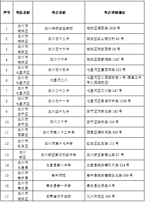 附件:2025年上半年甘肅省高等教育自學考試考點地址統(tǒng)計表