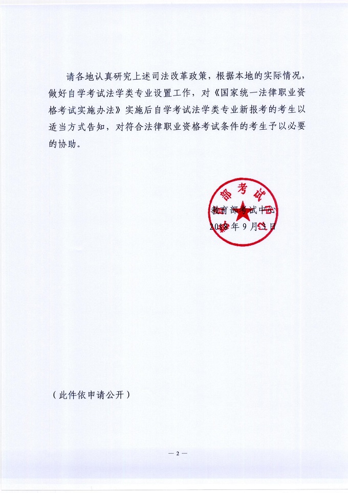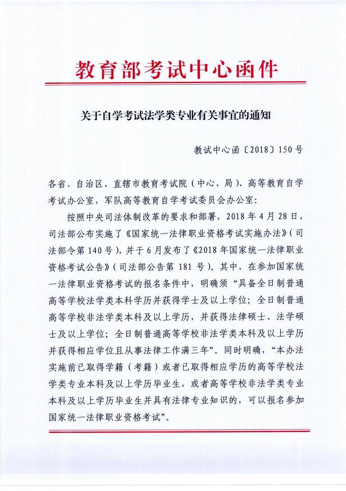 教育部考試中心關(guān)于自學(xué)考試法學(xué)類專業(yè)有關(guān)事宜的通知