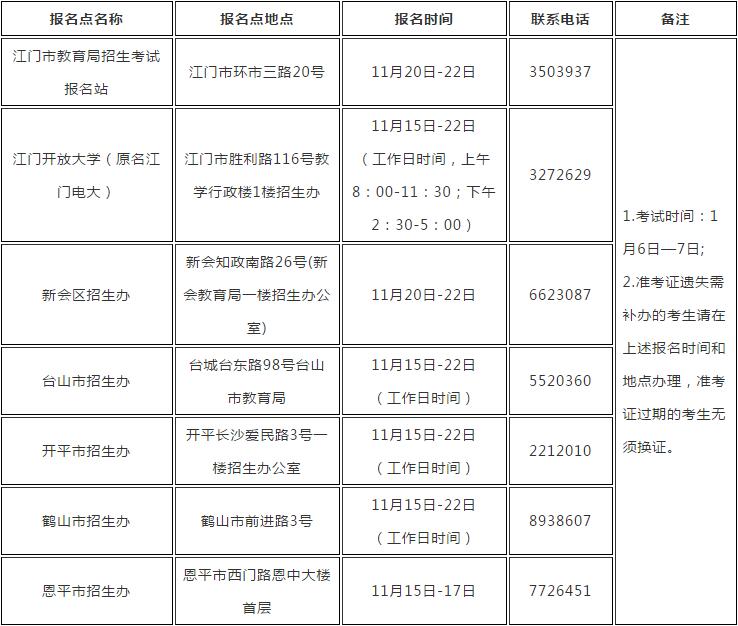 注意:此次江門只在市區(qū)設(shè)考點,考生只能選擇在江門市區(qū)考試,江門市區(qū)考點代碼:0701.