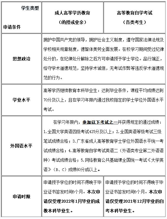 2022年夏華南師范大學(xué)自考本科畢業(yè)生學(xué)士學(xué)位申請條件