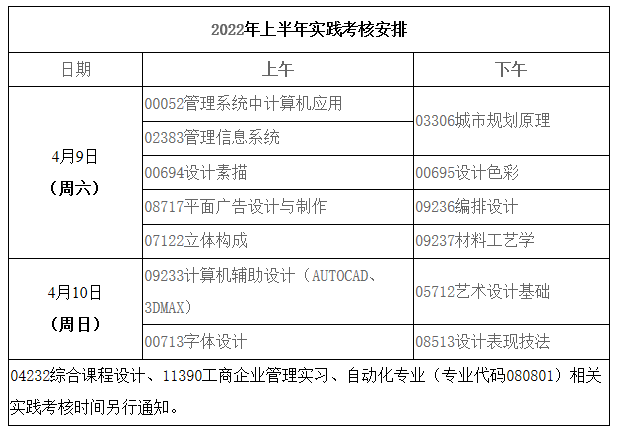 我校2022年上半年自學考試主考專業(yè)實踐考核課程考核(不含畢業(yè)論文/設計)將在3月開始,現(xiàn)將報名相關事項通知如下: