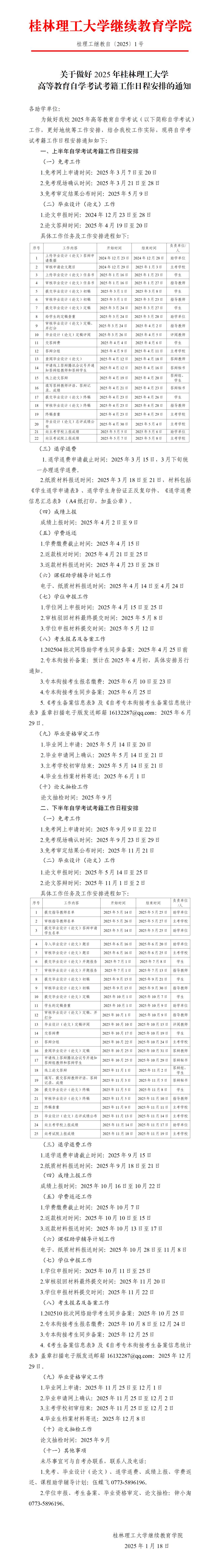 2025年桂林理工大學(xué)高等教育自學(xué)考試考籍工作日程安排