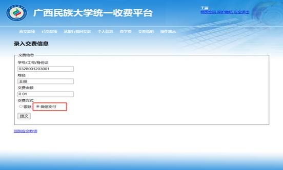 3. 【支付方式】選擇微信支付然后點擊提交。
