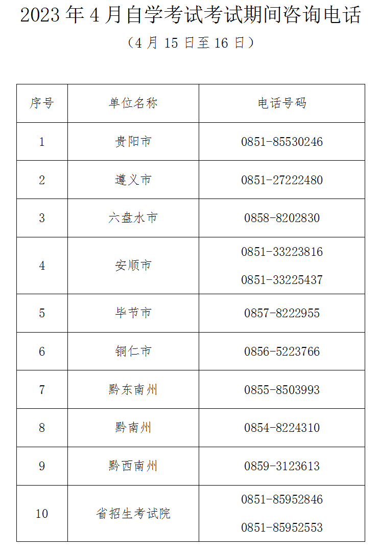 貴州省2023年4月高等教育自學考試考前溫馨提示