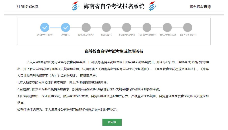 2、閱讀《考生誠(chéng)信承諾書》點(diǎn)擊【我同意】進(jìn)行下一步