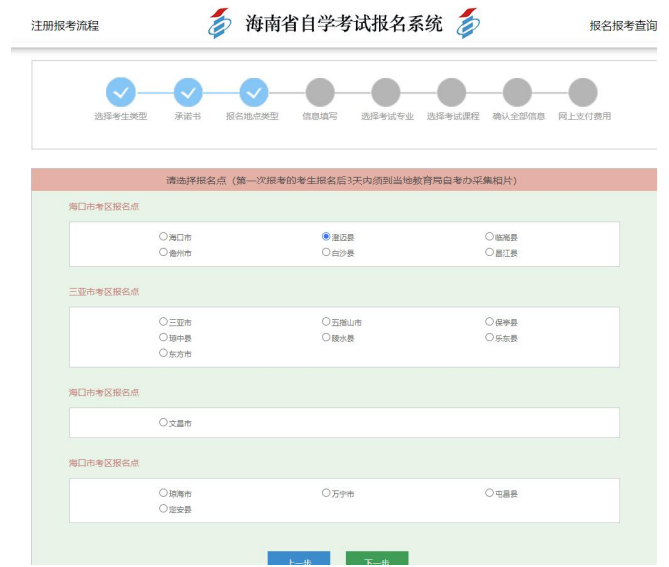 3、選擇報(bào)名地點(diǎn),進(jìn)行下一步