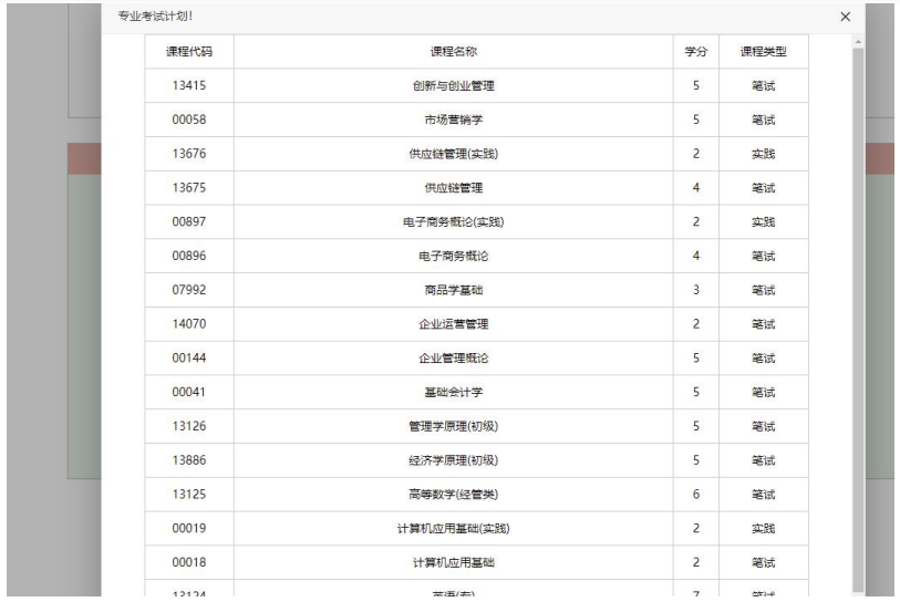 選擇報(bào)考專業(yè)后,彈框顯示專業(yè)的考試計(jì)劃,查看過后關(guān)閉即可