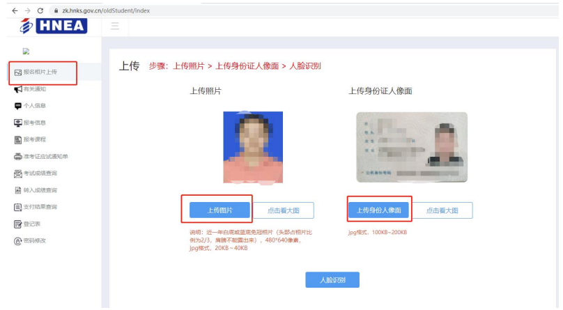 9、登錄后臺(tái)進(jìn)行報(bào)名照片上傳(https://zk.hnks.gov.cn/)