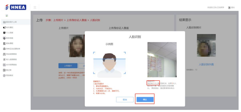 上傳完照片后點(diǎn)擊【人臉識(shí)別】按鈕