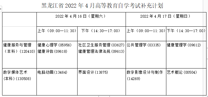 2022年4月黑龍江自學(xué)考試開考計(jì)劃的補(bǔ)充通知