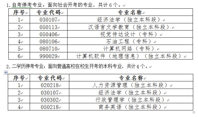 根據(jù)《教育部辦公廳關(guān)于印發(fā)〈高等教育自學考試專業(yè)設(shè)置實施細則〉和〈高等教育自學考試開考專業(yè)清單〉的通知》要求,對考生數(shù)量少、現(xiàn)專業(yè)名稱與《專業(yè)清單》不符的專業(yè)應(yīng)予以停考。依此原則并結(jié)合近幾年我省各專業(yè)考生報考情況,經(jīng)與有關(guān)主考學校商定,現(xiàn)就停考有關(guān)事宜通知如下: