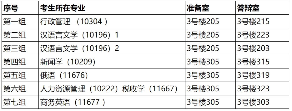 注:漢語言文學(xué)的分組名單、各專業(yè)的答辯順序名單,考生在準(zhǔn)備室查詢。
