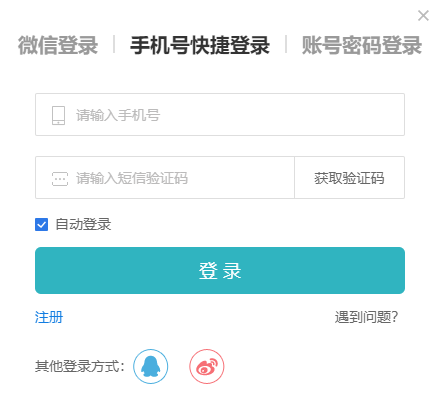 進(jìn)入登錄頁面,點(diǎn)擊手機(jī)號快捷登錄,在登錄界面下方“其他方式登錄”那里選擇您需要的第三方授權(quán)方式(QQ/微博)進(jìn)行登錄即可。