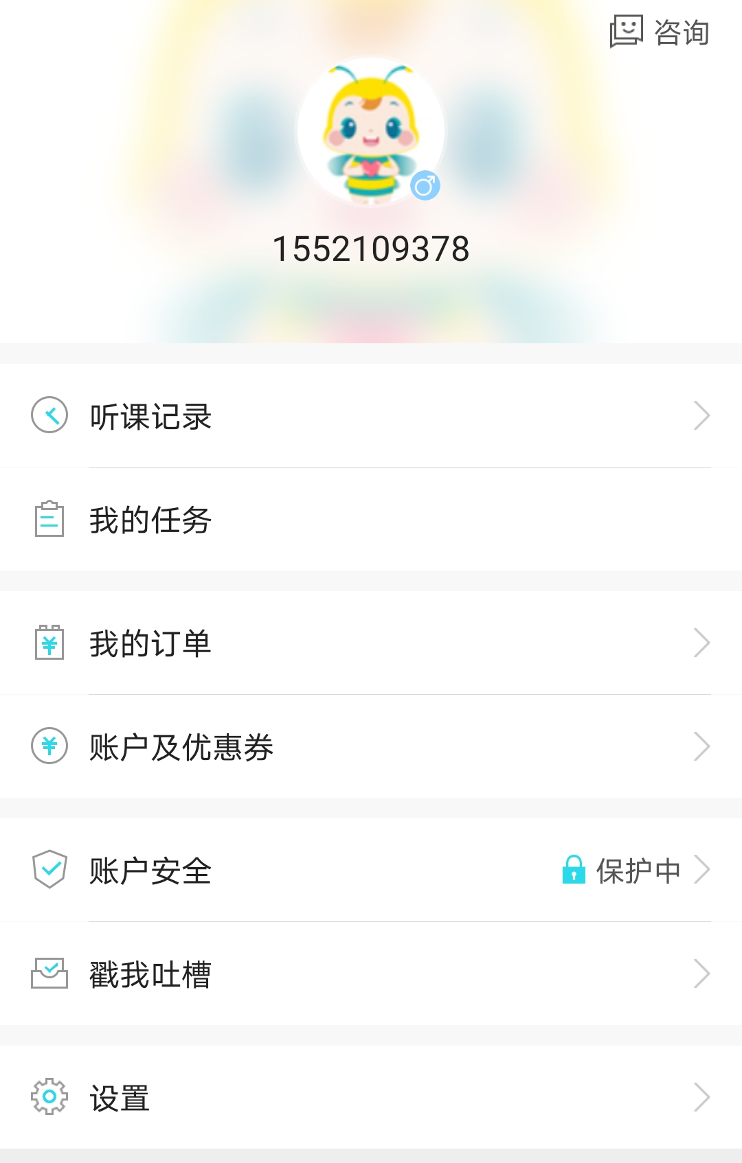 進入“我的”,可查看聽課記錄、我的任務(wù)及賬戶相關(guān)信息。