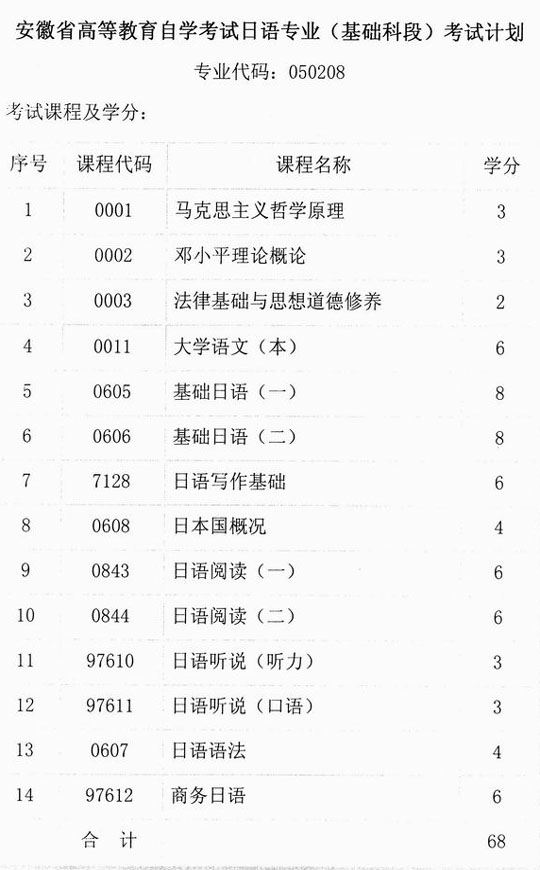 安徽自考日語(專、本科)考試計(jì)劃