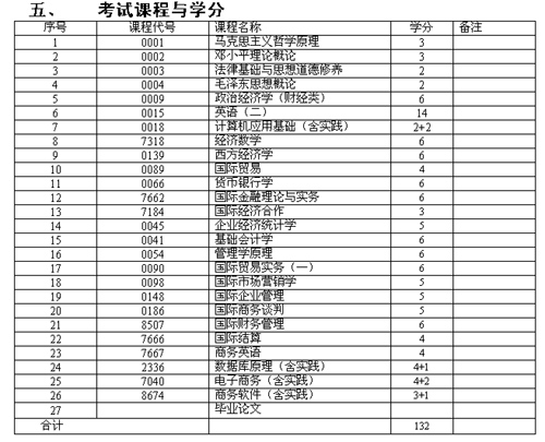 學位要求課程:英語(二)、西方經濟學、國際貿易、國際貿易實務(一)、國際市場營銷、國際企業(yè)管理