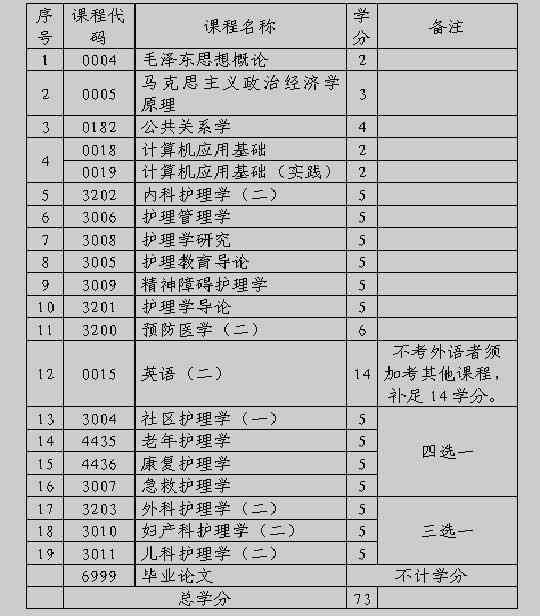 一、高等教育自學(xué)考試護(hù)理學(xué)專業(yè)(獨(dú)立本科段)考試計(jì)劃