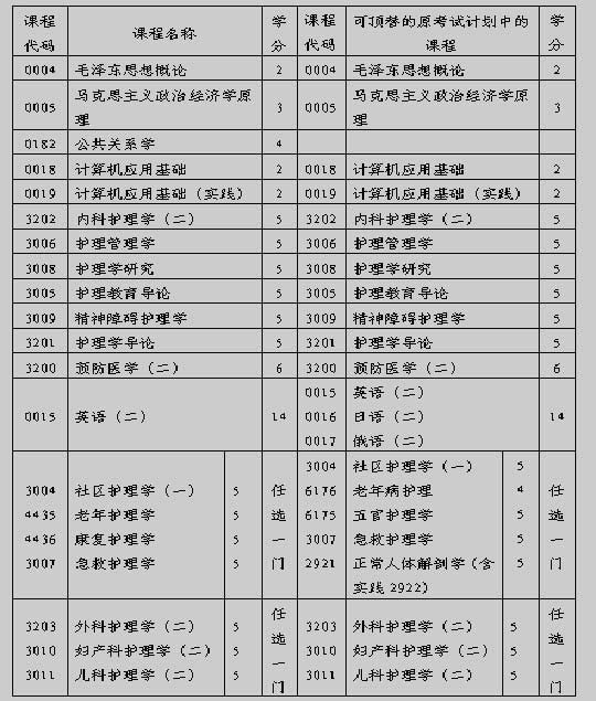 二、高等教育自學(xué)考試護(hù)理學(xué)專業(yè)(獨(dú)立本科段)新舊計(jì)劃課程頂替對(duì)照表
