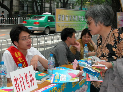作為省高等教育學(xué)會(huì)理事單位的省考辦,積極參與了本次咨詢活動(dòng)。省考辦設(shè)置的咨詢臺(tái)前,張貼著醒目的自考形象宣傳畫和報(bào)考簡(jiǎn)章。省考辦派出的咨詢小組向行人散發(fā)了自考宣傳材料,耐心細(xì)致地解答了咨詢者提出的每一個(gè)問(wèn)題。短短的半天時(shí)間,咨詢者絡(luò)繹不絕,既有稚氣未脫的年青人,也有布滿銀發(fā)的老年人。