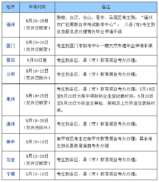 福建各市06年上辦理畢業(yè)申請(qǐng)手續(xù)時(shí)間