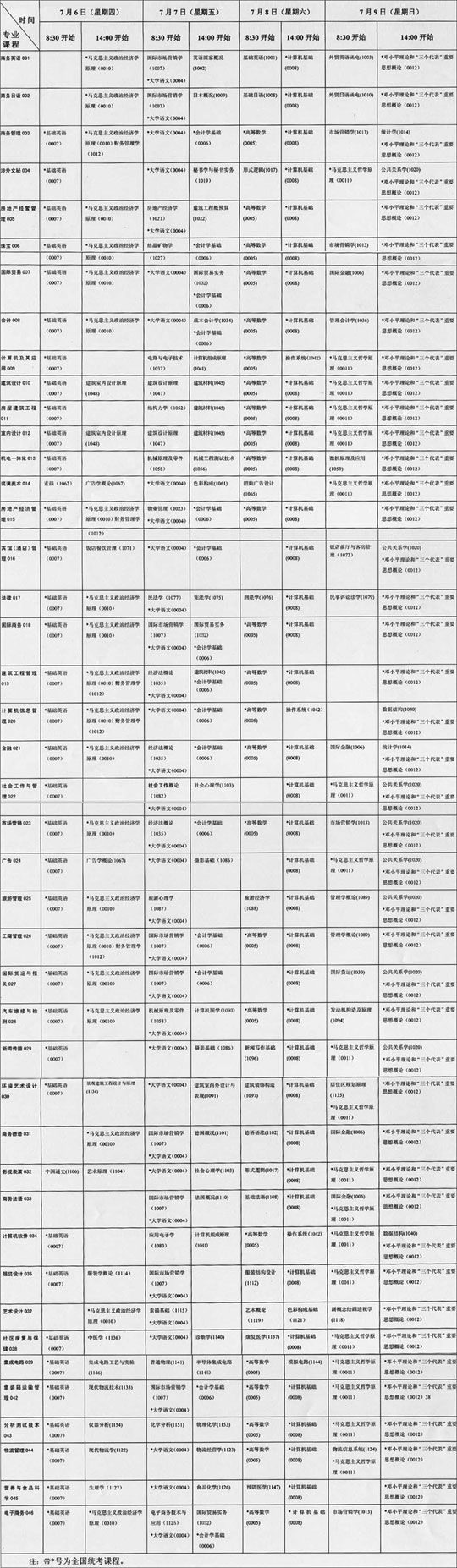 上海市06年7月高教學(xué)歷文憑考試統(tǒng)考課程安排