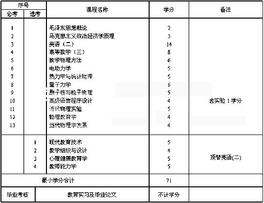 物理教育專業(yè)(獨(dú)立本科段)考試計(jì)劃