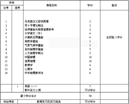 云南自學(xué)考試地理教育(專科)專業(yè)考試計(jì)劃