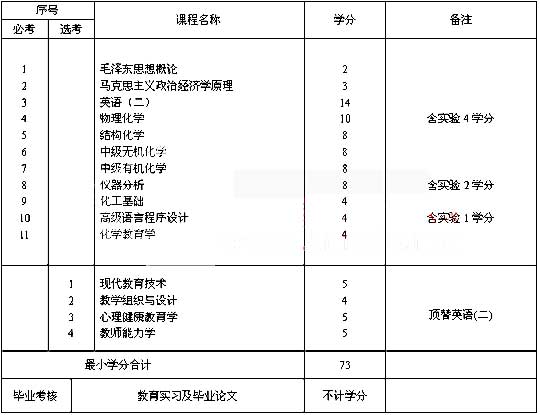 化學(xué)教育專業(yè)(獨(dú)立本科段)考試計(jì)劃