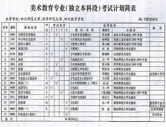四川自學(xué)考試美術(shù)教育(獨(dú)本)專業(yè)考試計(jì)劃