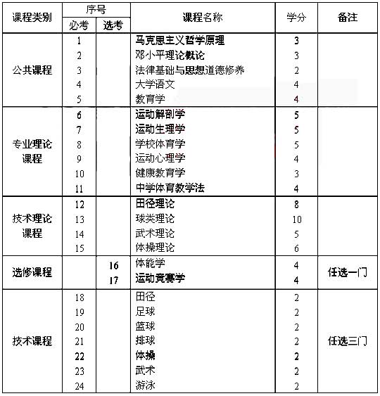 云南自學考試體育教育(專科)專業(yè)考試計劃